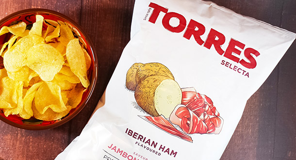 Elemento di spicco: Patatine fritte con vero sapore di prosciutto iberico. Sapore intenso e genuino.